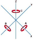 main axes x, y, c, z, the most varied shapes, indentations and cavities are
